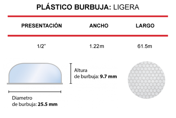 Película de polietileno de baja densidad formada por 2 láminas extruídas, con burbujas de aire de alta resistencia. Protege de daños por manipulación, envíos y mensajería. Es flexible, versátil y resistente a la humedad.